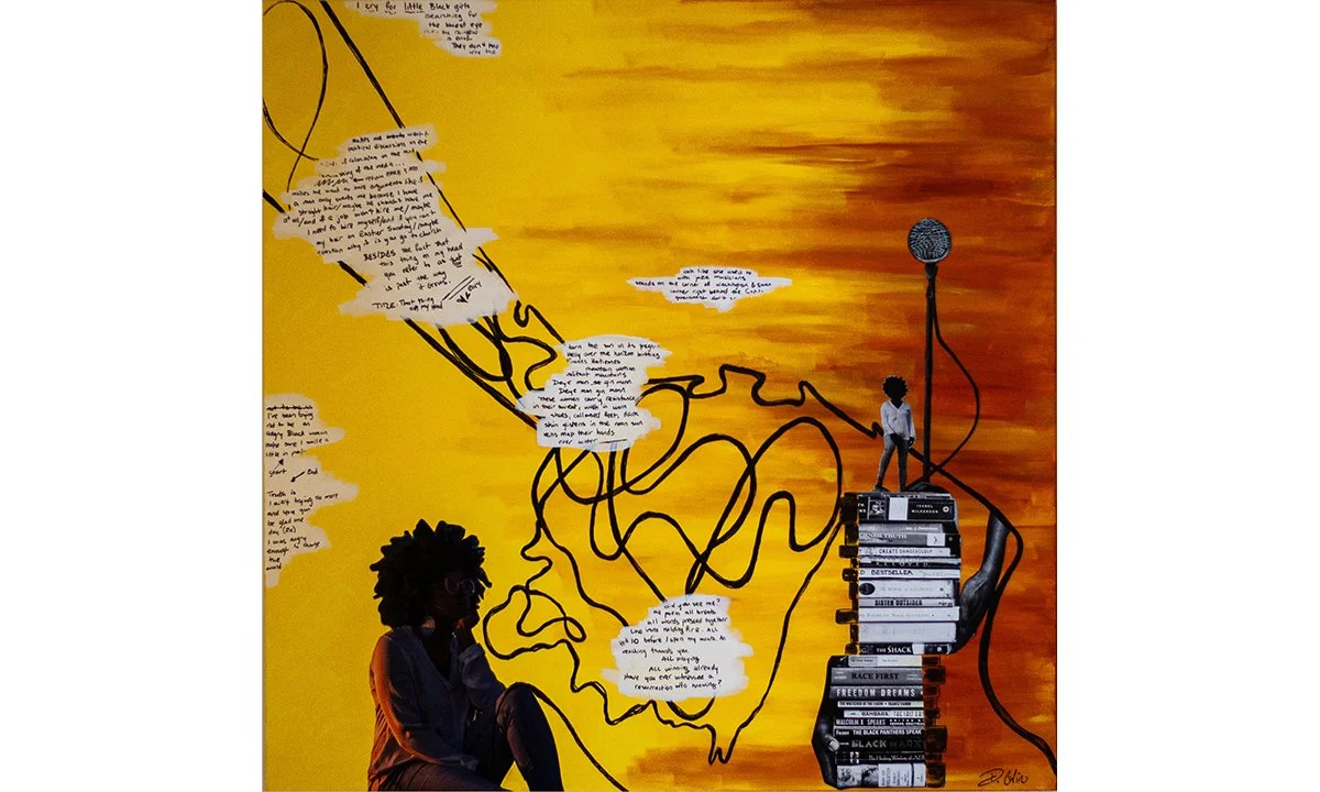 Poetry Happened Here is a mixed-media map tracing my poetic journey through the city of Albany. Each marked location represents a place where I once shared poems aloud—some still standing, others now gone. Through collage, photographs, old flyers, paint, and poetry, the map captures both memory and presence, honoring venues that gave space to creative expression. Paired with a zine featuring writing prompts and QR codes linking to audio recordings of each poem, this project invites viewers to walk the city and experience the echoes of where poetry lived, thrived, and still lingers.