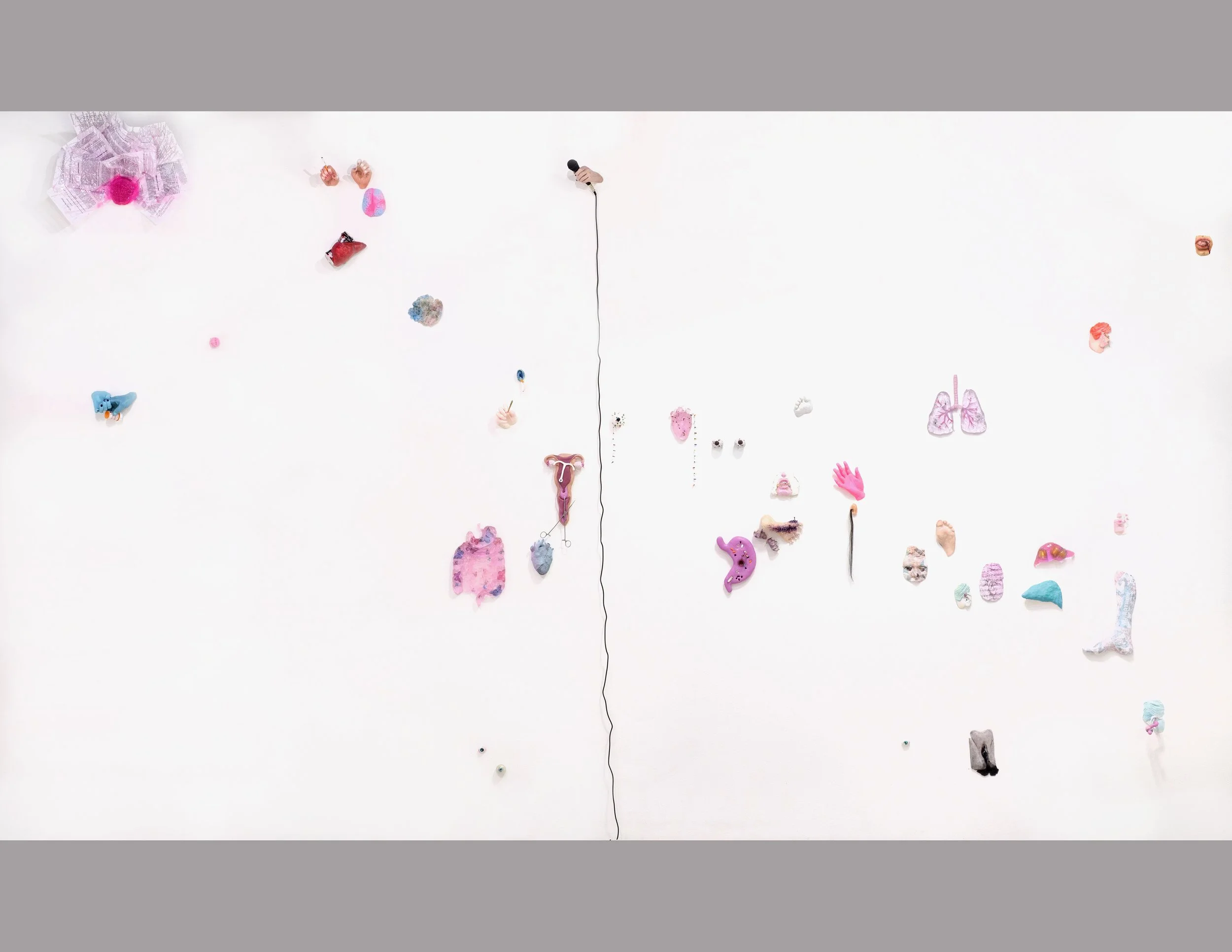 Often, just the idea of your favorite restaurant can get your stomach grumbling; passing the site of a great concert can sink that proverbial worm deep into your ear; walking around the campus of your alma mater reminds you of that sponge-like feeling your brain once had there, absorbing facts and figures and theories. Specific places seem to leave ghosts of themselves upon our skin, memories sinking into flesh, ideas caught in our organs, rattling around, reminding us of where we’ve been. Latitude vs longitude juxtaposed alongside burns, surgical stigmata, heartache and grief, memory-induced laugh lines, and nights inhaled to bleary-eyed mornings unslept. Marks unseen and unsung to streaks of scar tissue lead to our depictions of different lives lived within the city limits, creating an amalgamation of ourselves. The places we inhabit, the places we avoid, the cracked window pane on that one house on that one street that somehow becomes our family. These moments, this rolodex of sensory experiences, becomes a language. Traces left on the body – either intangible or literal wounds – morph into a recollection of events to form our own shared body map. Fragments act as relics, preserving moments of vulnerability, loss, and transformation. They are not meant to form a complete body, but rather to emphasize what it means to carry stories in pieces. By dislocating the body from its usual form and recontextualizing it as a fragmented cartography, the piece invites viewers to consider how we navigate the world, not just through physical space, but through feeling and memory.